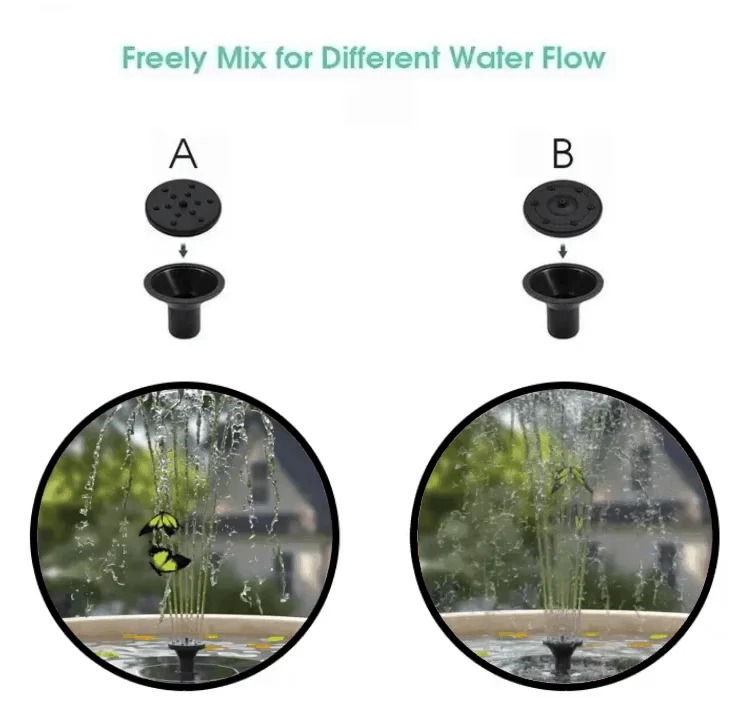 A very practical fountain pump for everyday outdoor use. It started working almost immediately in the sun, and the water patterns are easy to customize. It’s lightweight, convenient, and low-maintenance. Shipping was quick too, so I’m really satisfied with this purchase
